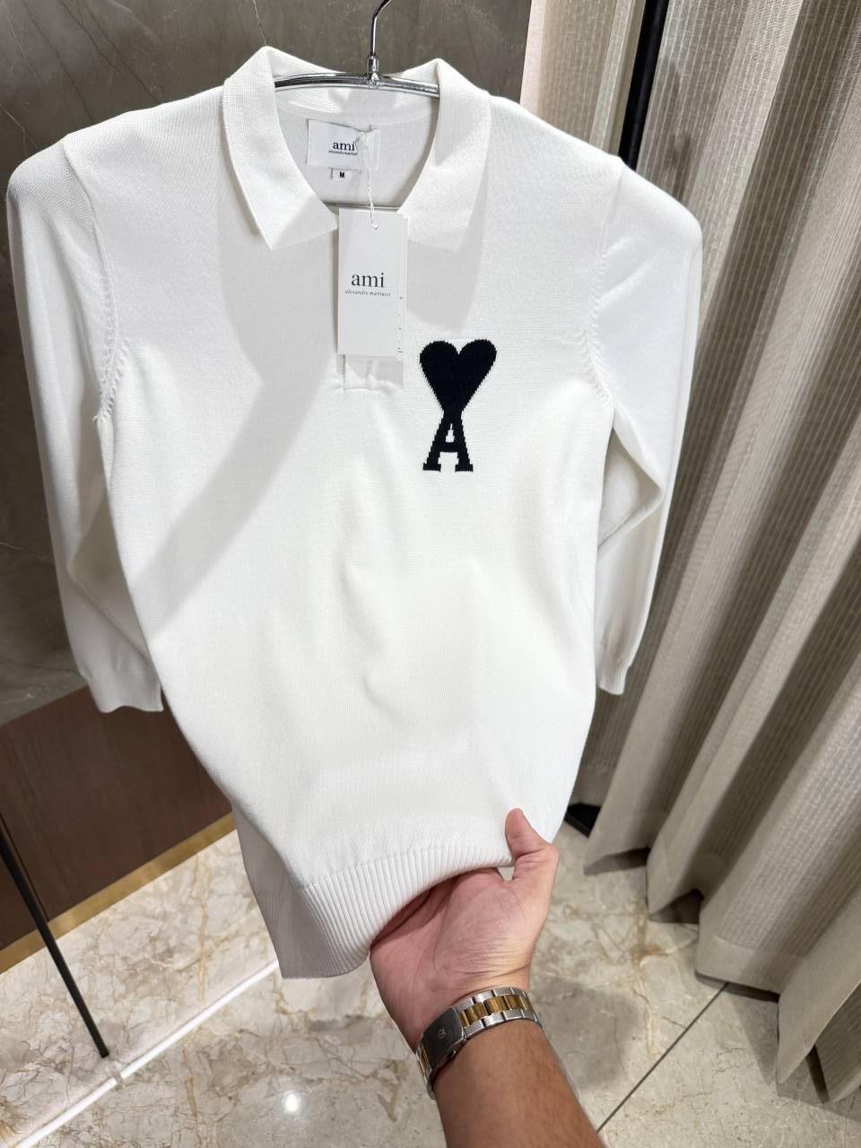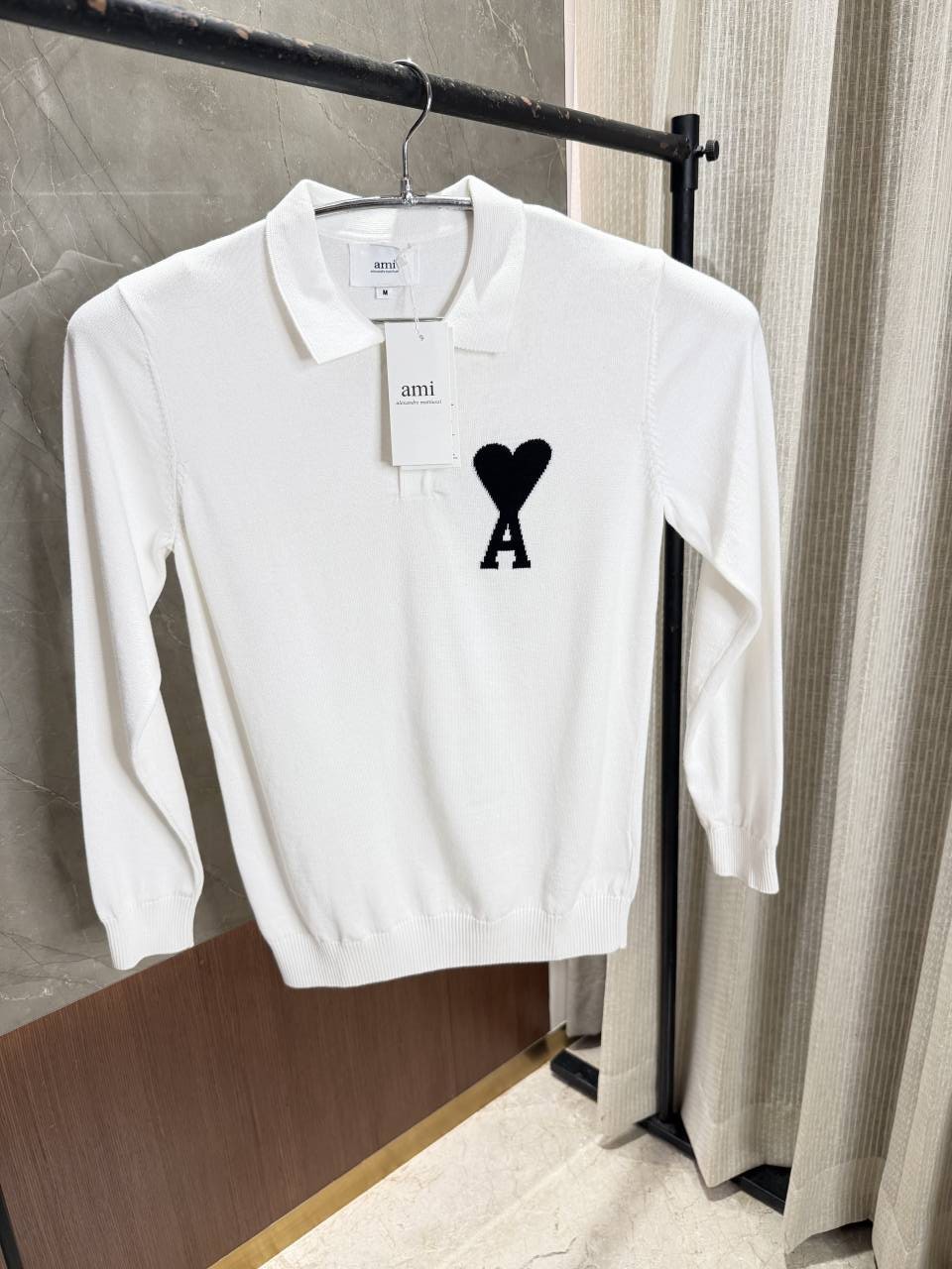 Ami Paris White Knitted Polo Full sleeves IMPORTED
