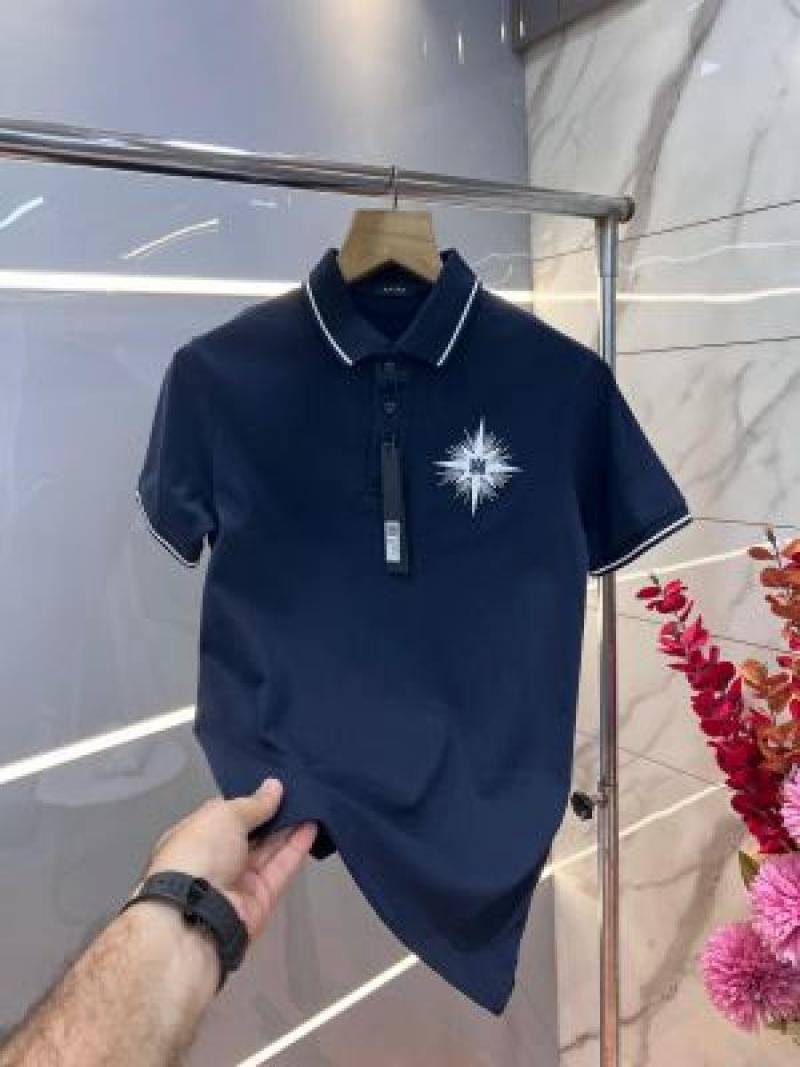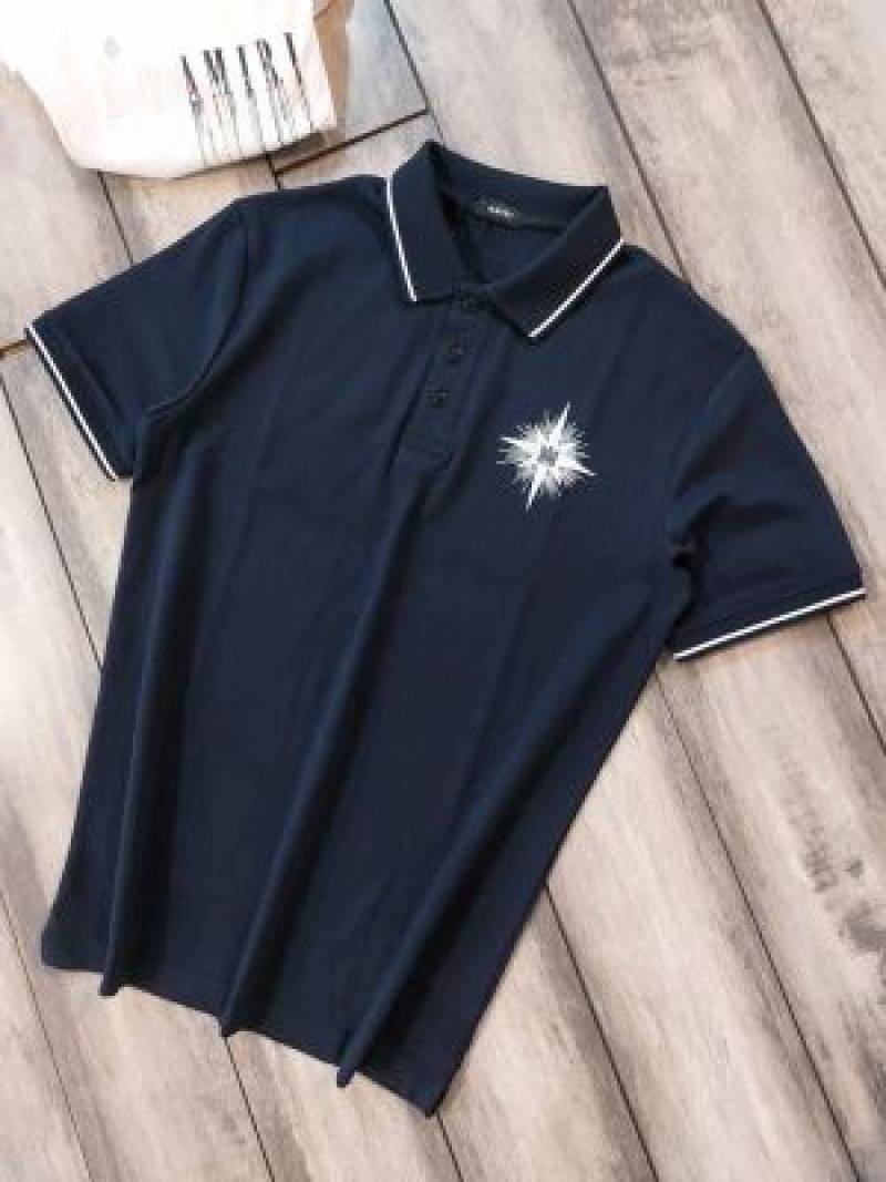 Amir i Navy Premium Cotton Lycra Pique fabric Polo Tshirt with Collar Design and Emboss Logo 2992