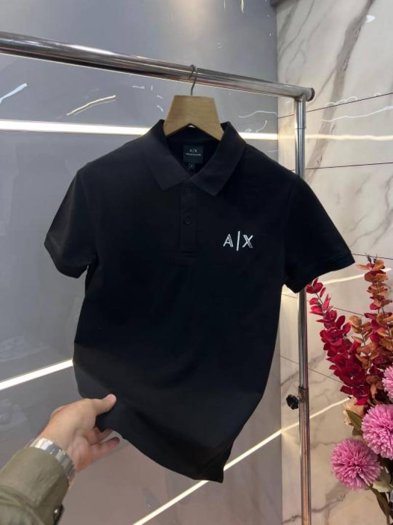 Arman i Exchange Black Premium Cotton Lycra Pique fabric Polo Tshirt with Printed Logo 3120