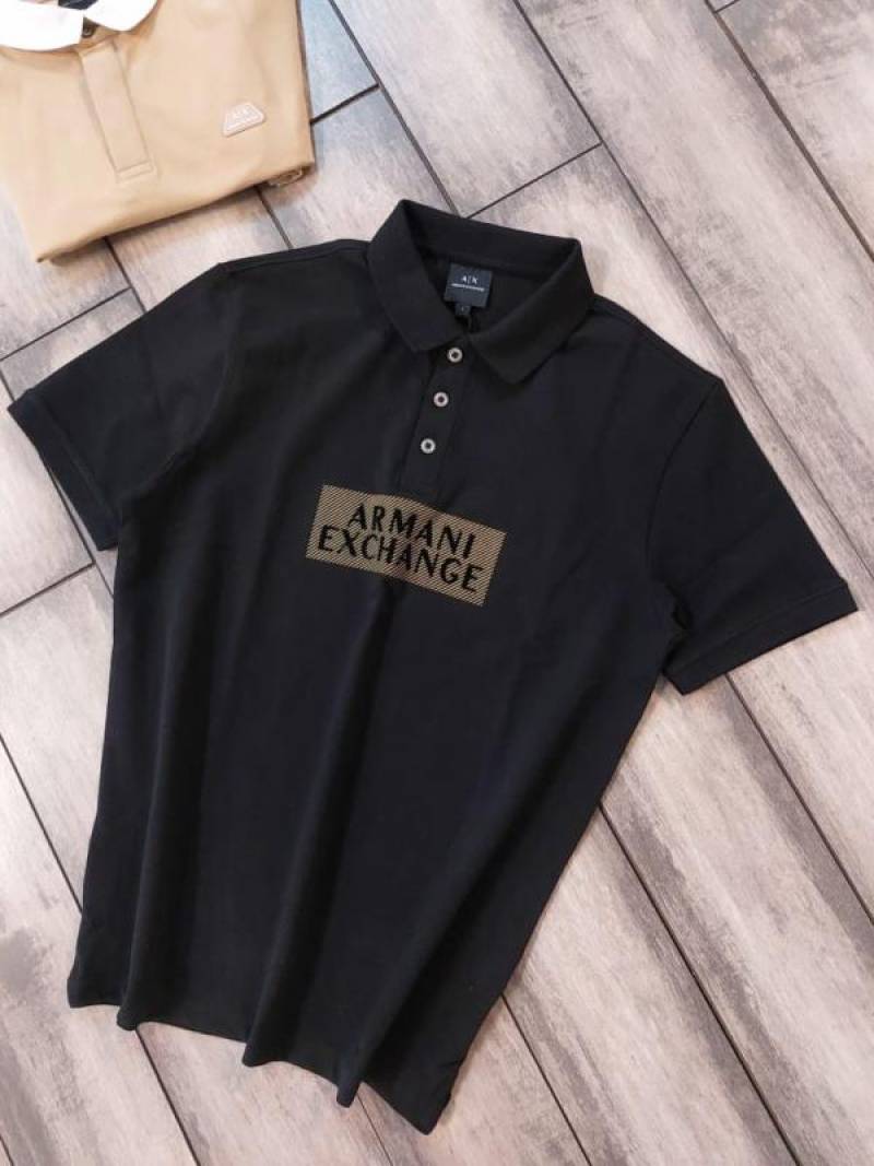 Arman i Exchange Black Premium Cotton Lycra Pique fabric Polo Tshirt with Printed Logo 3120