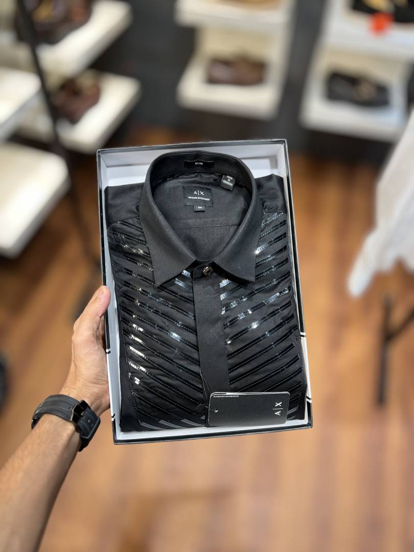 • Arman_i Exchange Reflective Black Premium Shirt With Brand Box Packing And Carry Bag F2500-BL