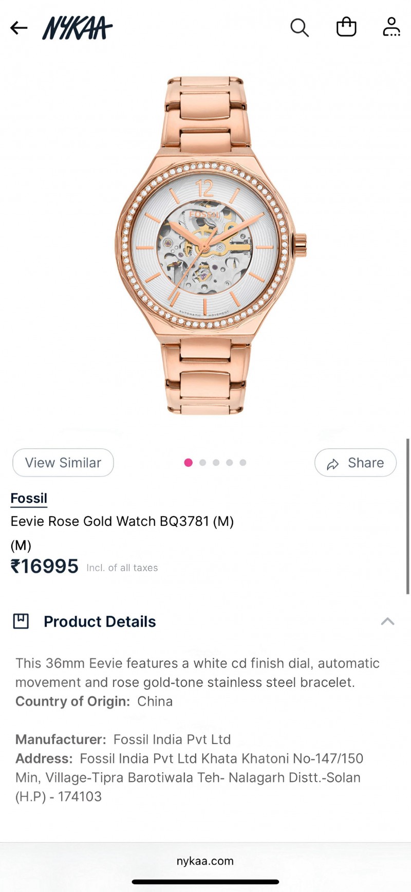 foss eevie automatic bq3781 Dial Size 34mm