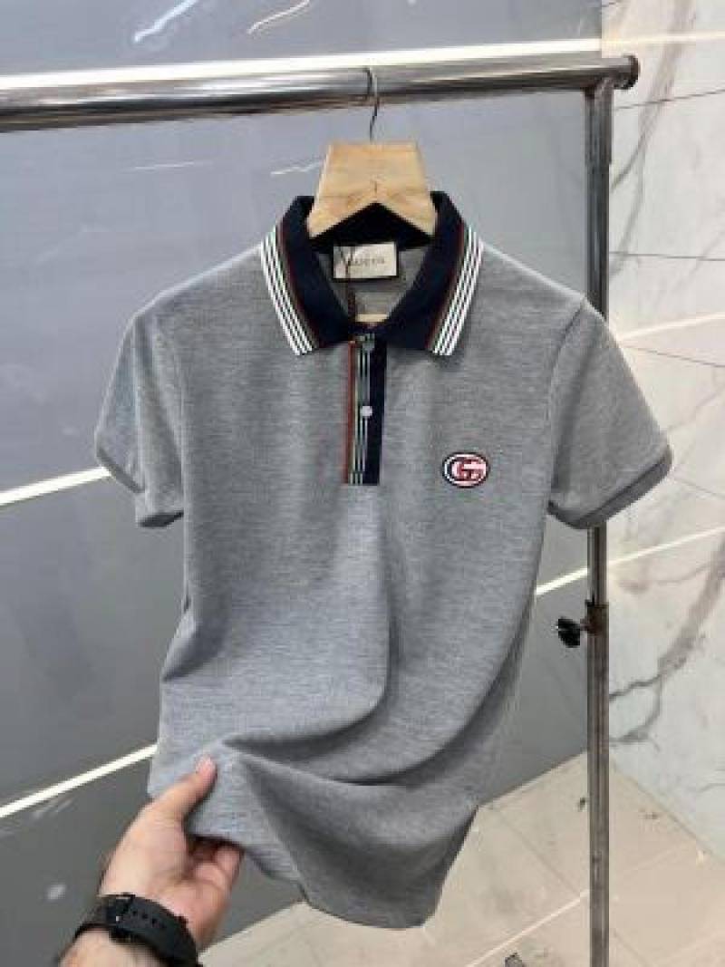 Gucc i Grey Premium Polo TShirt with 275 gsm Pique 4way lycra fabric and Fancy Collar with Embroidered Logo 2538