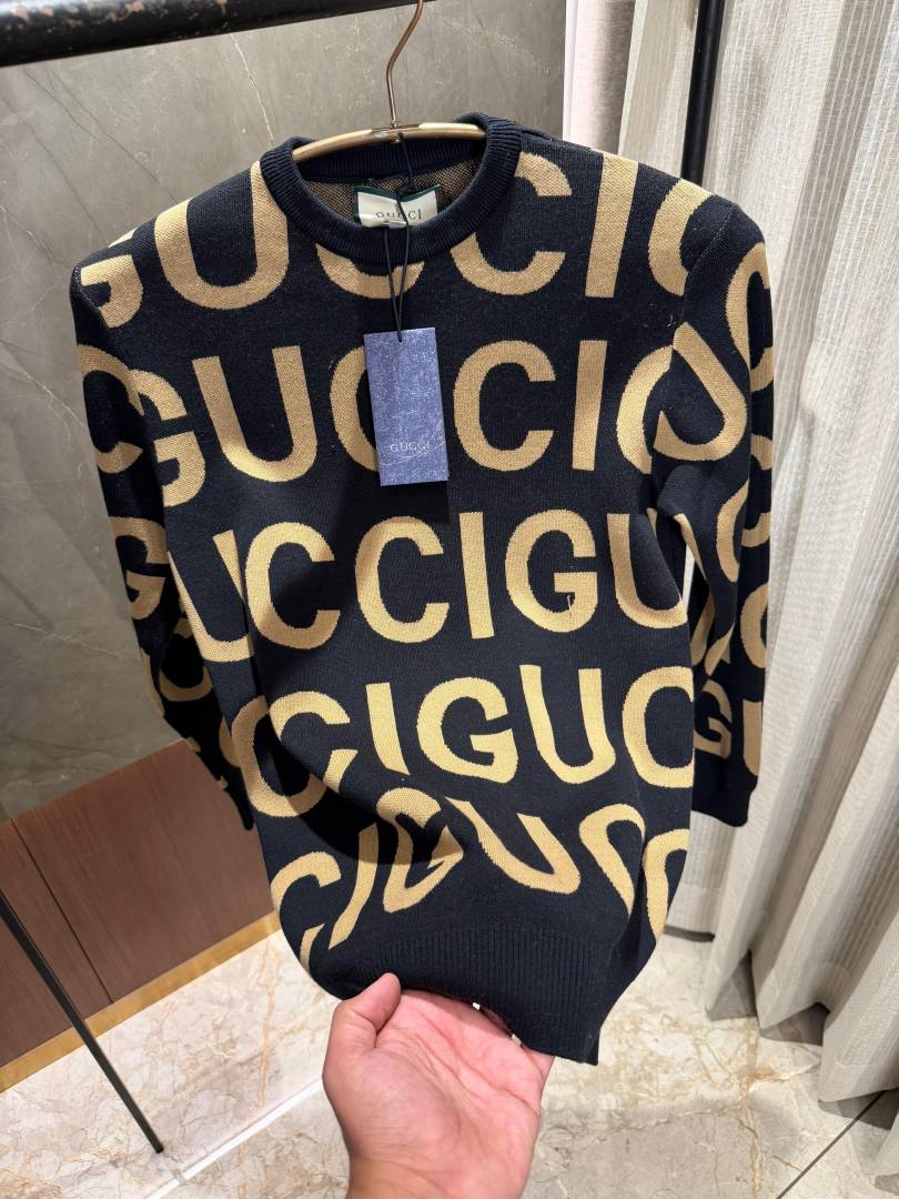 Gucc i Light Black Knitted Pullover Full Sleeves Knitted Lycra