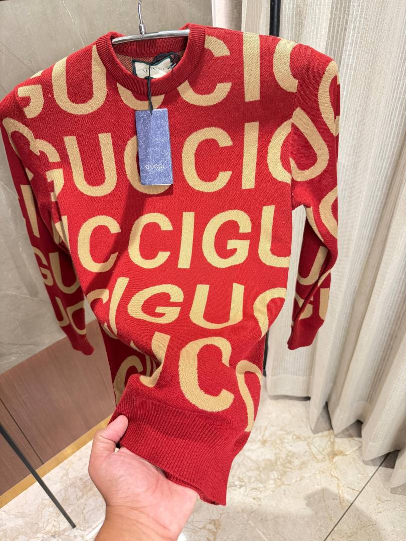 Gucc i Light Red Knitted Pullover Full Sleeves Knitted Lycra