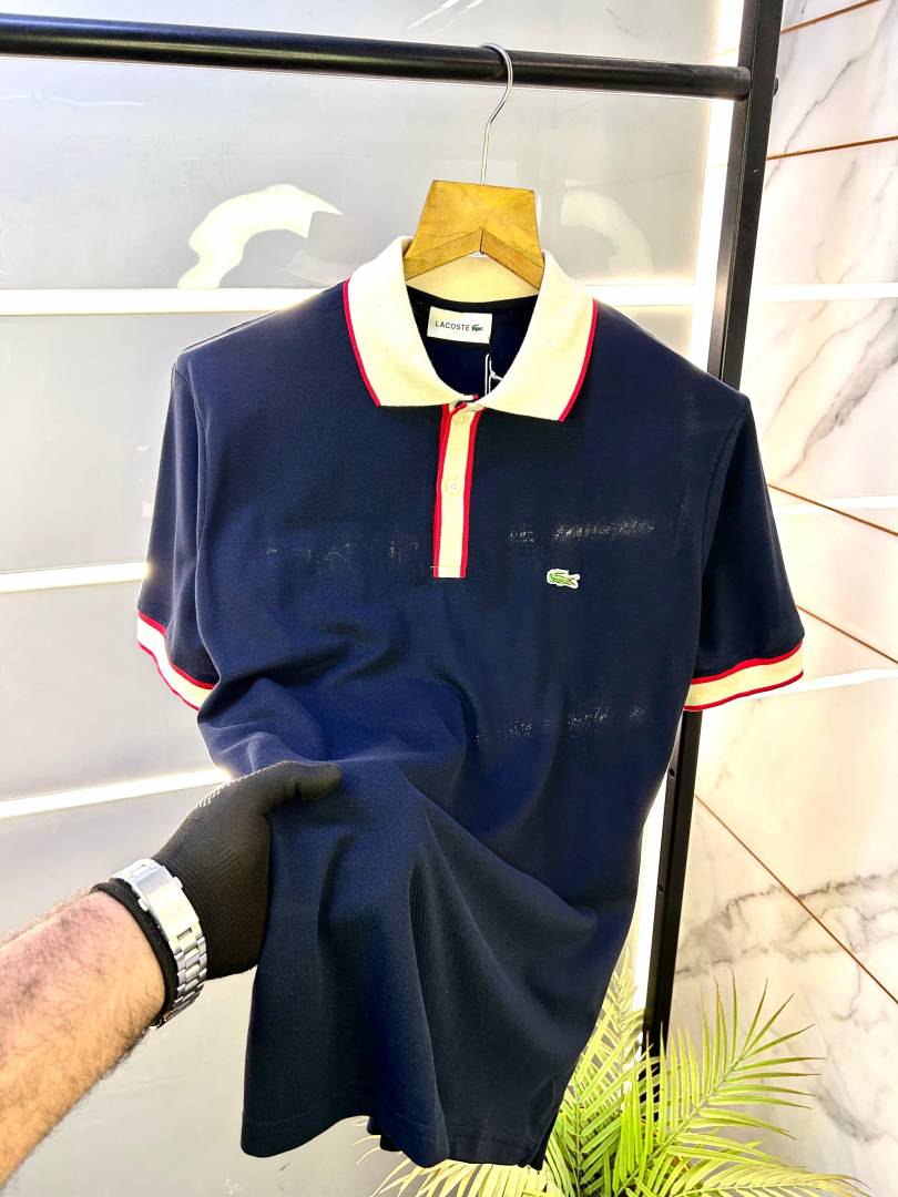 Lacost e Navy Polo Premium Collar Neck T-shirt F2974-NY