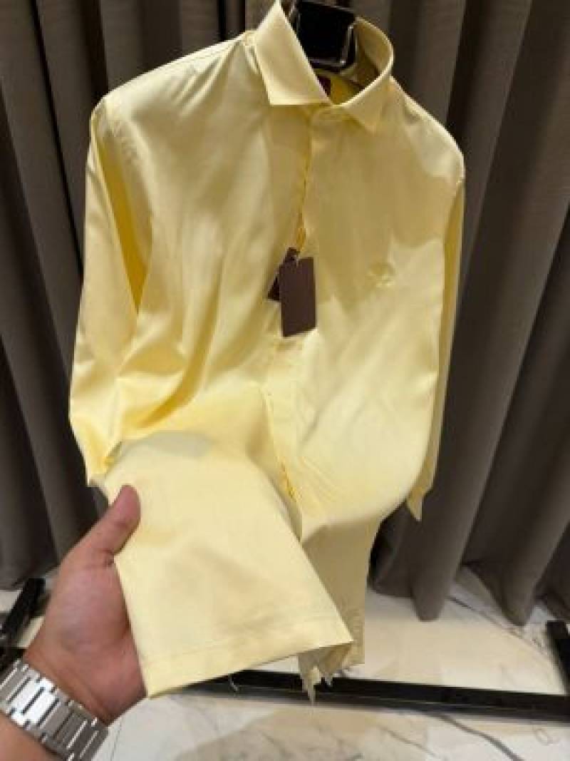 • Lorro Piana Imported Korean Fabric Box Pack Full Sleeves Shirt Pineapple Yellow