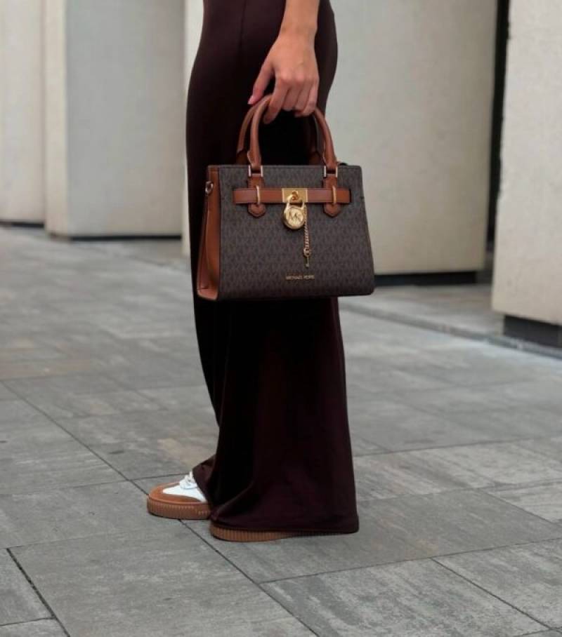 Michael_Kors Hamilton Small Logo Satchel Brown with box 742
