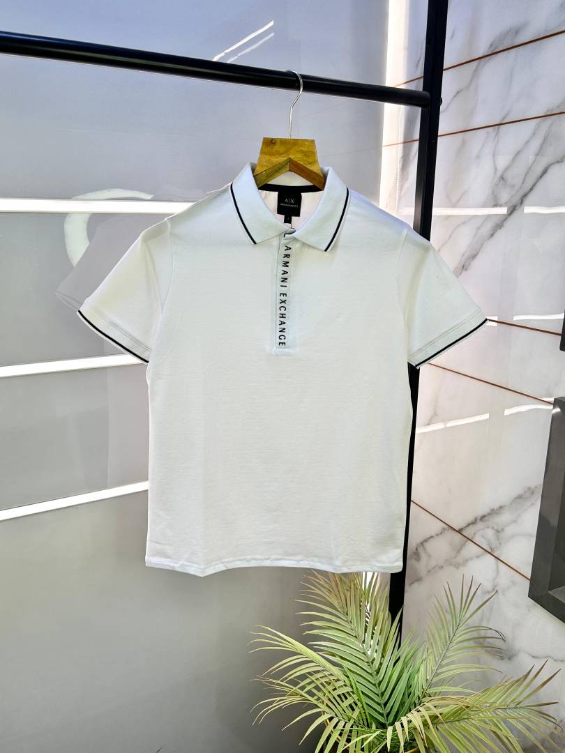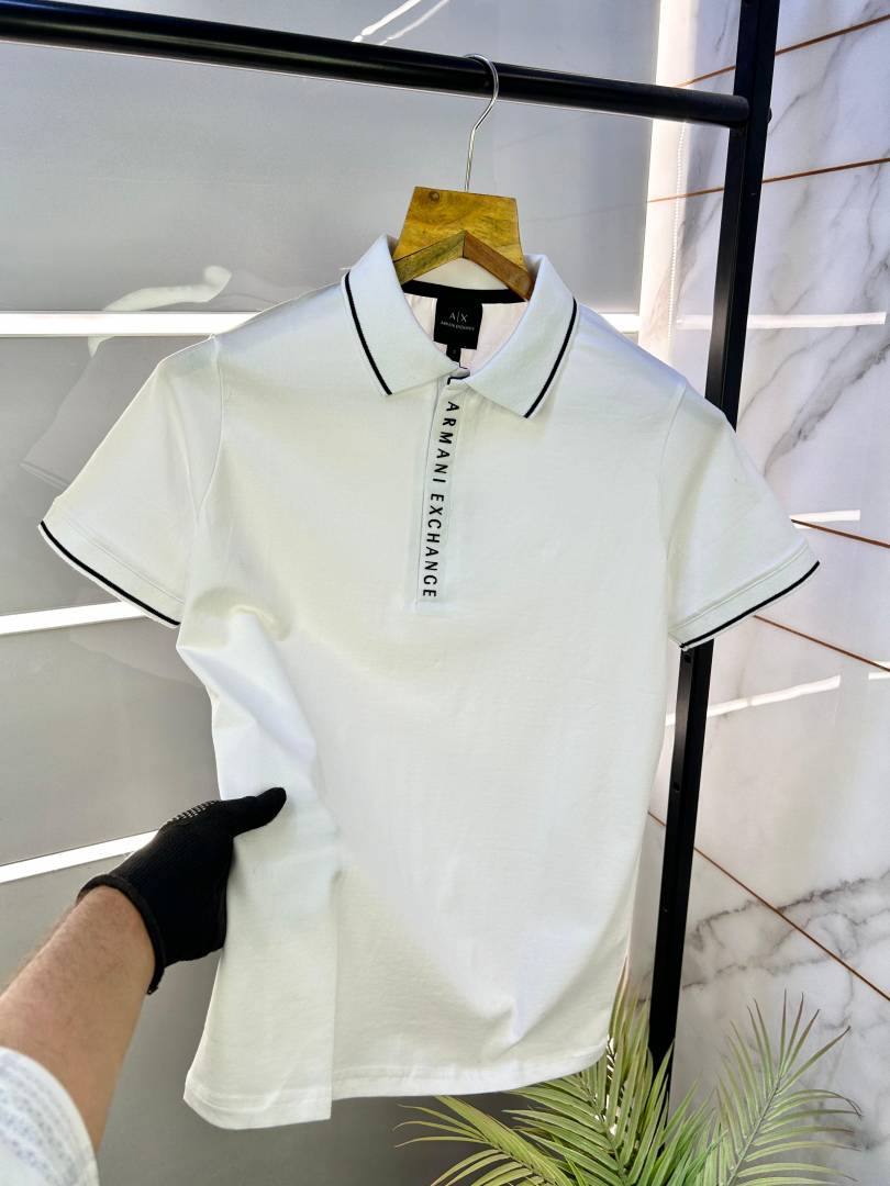 Sale Arman_i Exchange Zipper White Collar Neck Premium Polo T-shirt F2438-WH