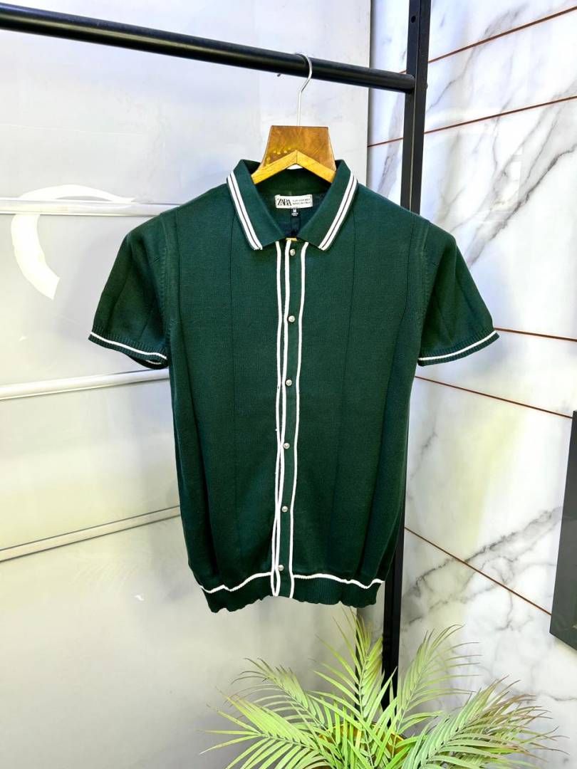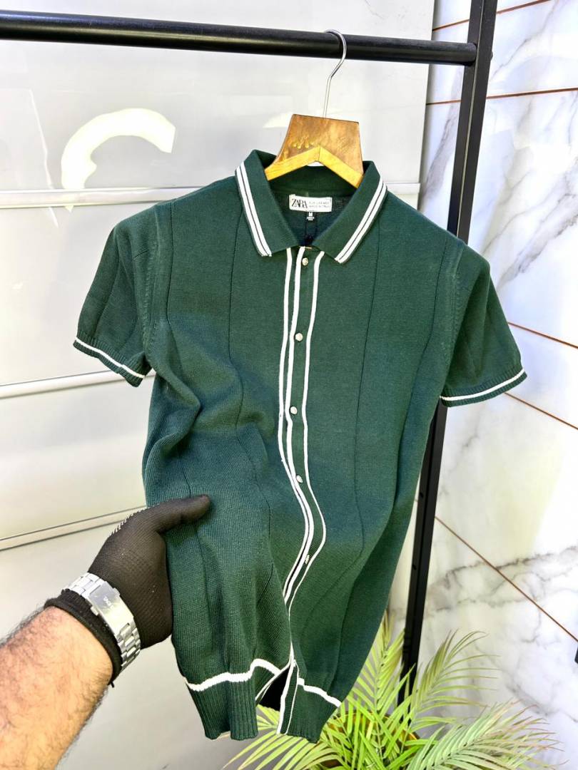 Zar a Knitted Green Imported Super Premium Collar Shirt F3134-GR